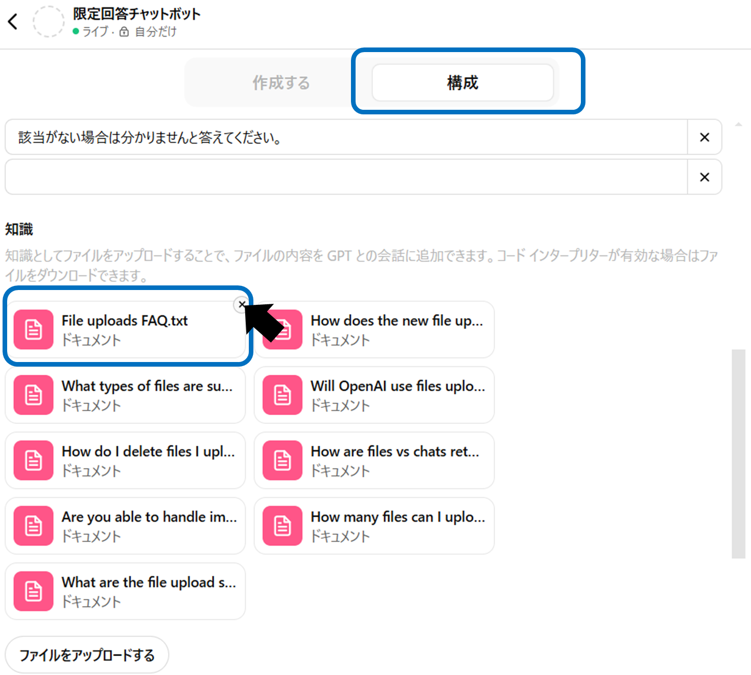 カスタムGPTにアップロードしたファイル