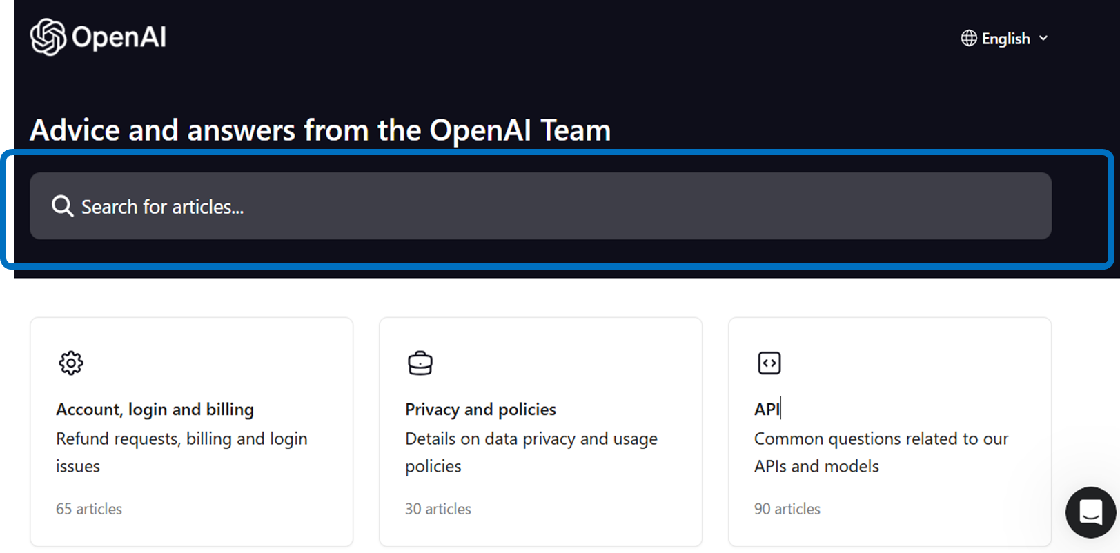 ChatGPTのサポートは英語のみで提供されています。問い合わせの際は、英語で記載するようにしましょう。