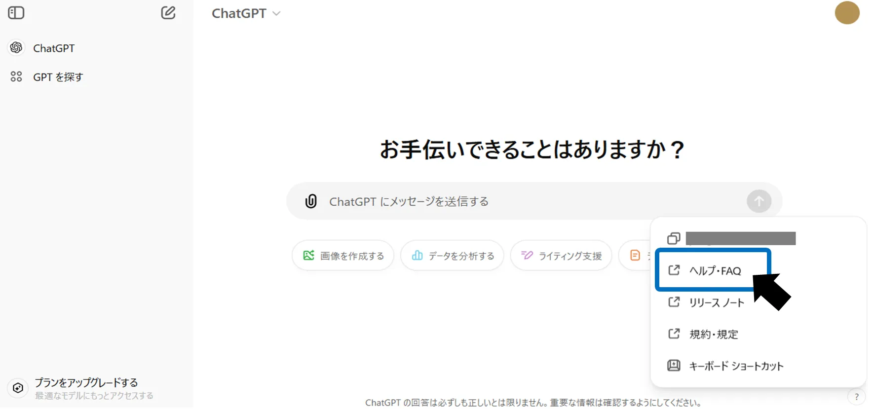 When you click the "?" icon at the bottom right of the ChatGPT screen, several options will appear. By selecting "Help & FAQ" there, you can access Open AI's official help page (https://help.openai.com/en) can be accessed.